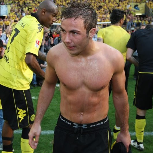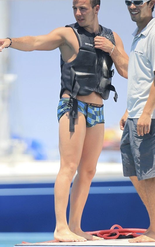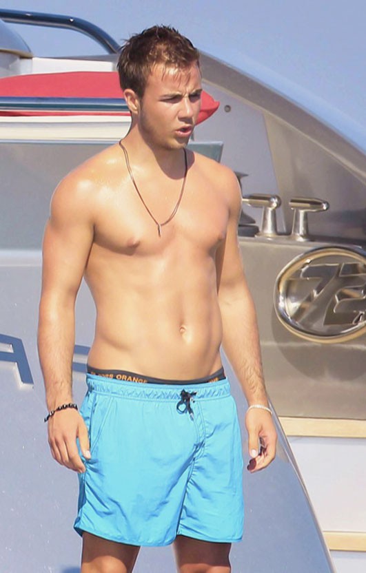 Mario Götze es uno de los futbolistas que más material proporciona para el disfrute de la prensa guei. Por poco que sigas la liga alemana le habrás visto alguna vez quitándose la camiseta, haciéndo posturitas en el césped, etc. Y seguro que las fotos que le hicieron este verano pasado en un barco con su novia te suenan de algo. El futbolista estaba en pleno furor hormonal y de vacaciones. Normal.