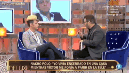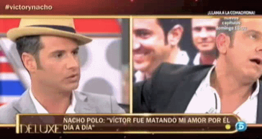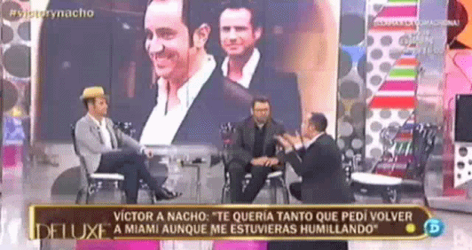 Anoche se reencontraron en televisión Nacho Polo y Víctor Sandoval, los Amantes de Teruel con final alternativo, y tuvieron su hora de gloria para decirse todo lo que no se habían dicho en mucho tiempo. Sin saber mucho en qué anda cada uno se puede presuponer que Nacho Polo hace su vida como quiere y que Víctor Sandoval está atrapado en el tiempo añorando un amor del pasado. Hala, ya hemos juzgado con el mazo. Ahora seguimos con los GIFs, que no nos gusta entrar en juicios de moral.