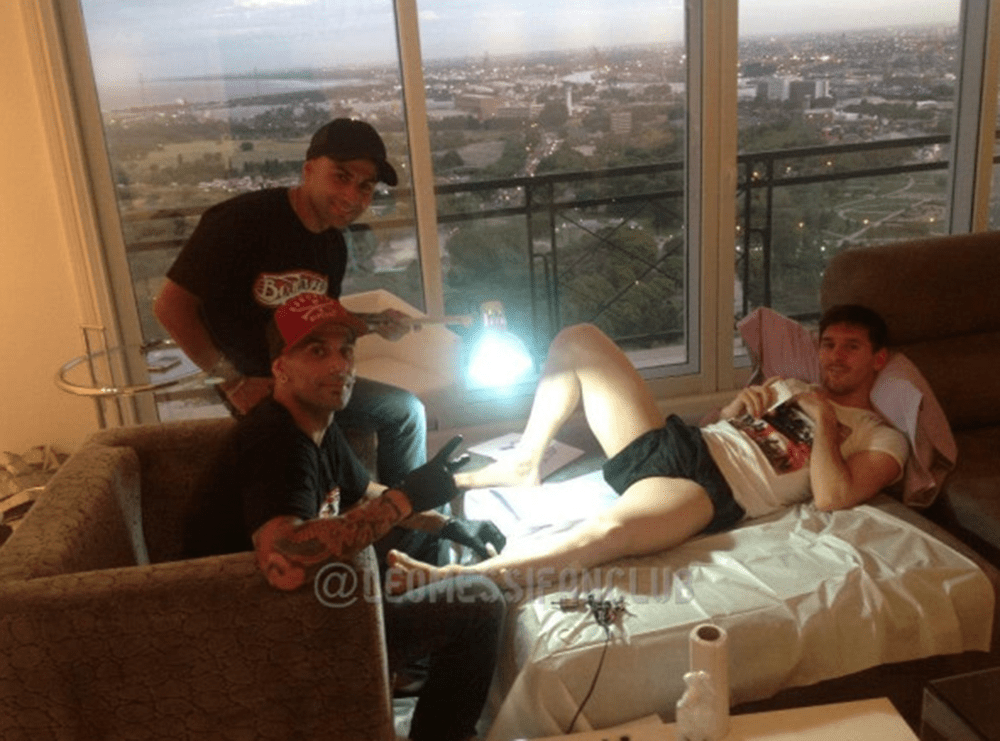 Aquí tienes las fotos de Leo Messi haciéndose el tatuaje con las manos de su hijo Thiago.