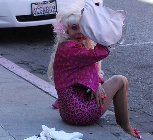 Disgusto tremendo en Hollywood. Entre el altísimo volumen de noticias interesantes que hay hoy una se ha hecho hueco entre las demás: Angelyne se ha caído al suelo tras sacar unas camisetas del maletero de su Corvette: