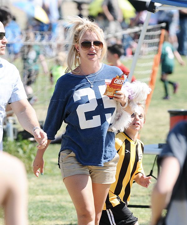 La bolsa que lleva Britney en la mano contiene más de 600 calorias, lo mismo que un Big Mac, así que imagínate qué tipo de bomba calórica se está metiendo la chica de Louisiana entre pechos y espalda. Britney cariño, con lo que te cuesta luego quemar eso en el gimnasio…