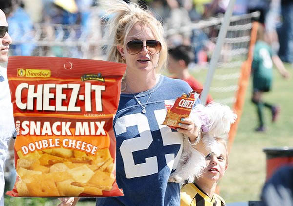 Parece que Britney Spears no ha podido soportar el estrés tras su ruptura con Jason Trawick y ha recuperado una de sus peores adicciones: vuelven los Cheetos. Bueno, en realidad Britney ahora le da a los Cheez-It, unos snacks fabricados por Kellogg’s que mezclan sabores de varios tipos de queso.