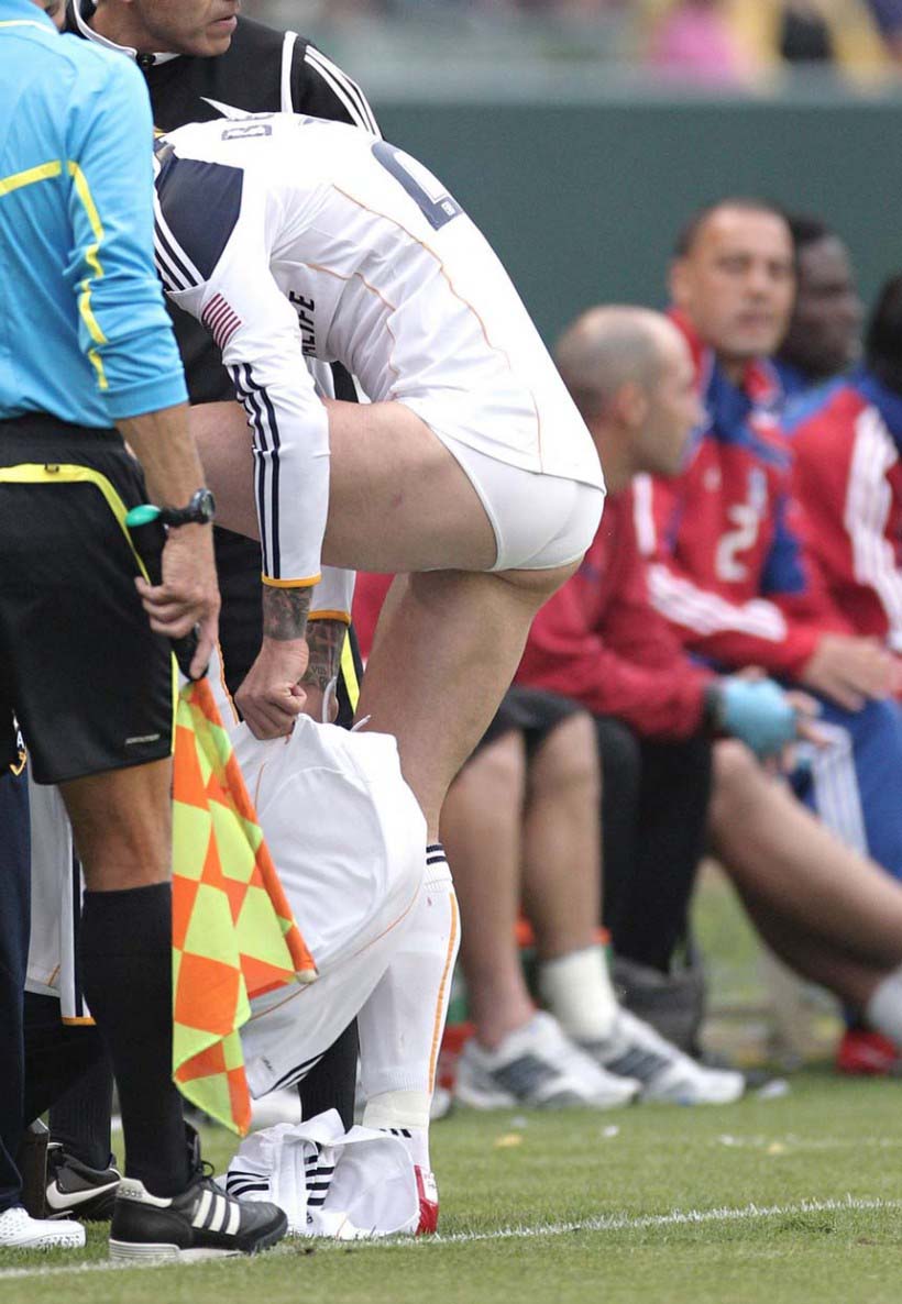 David Beckham ha anunciado hoy mismo su retirada del fútbol profesional tras una temporada relámpago en el fútbol profesional, no sabemos qué hará en el futuro (publicidad no le va a faltar) pero hemos decidido dedicarle una galería definitiva. El paquete de David Beckham siempre ha sido uno de los favoritos en el mundo del fútbol, sus fotos shirtless y su culo tampoco se quedan cortos. Disfruta, baby: