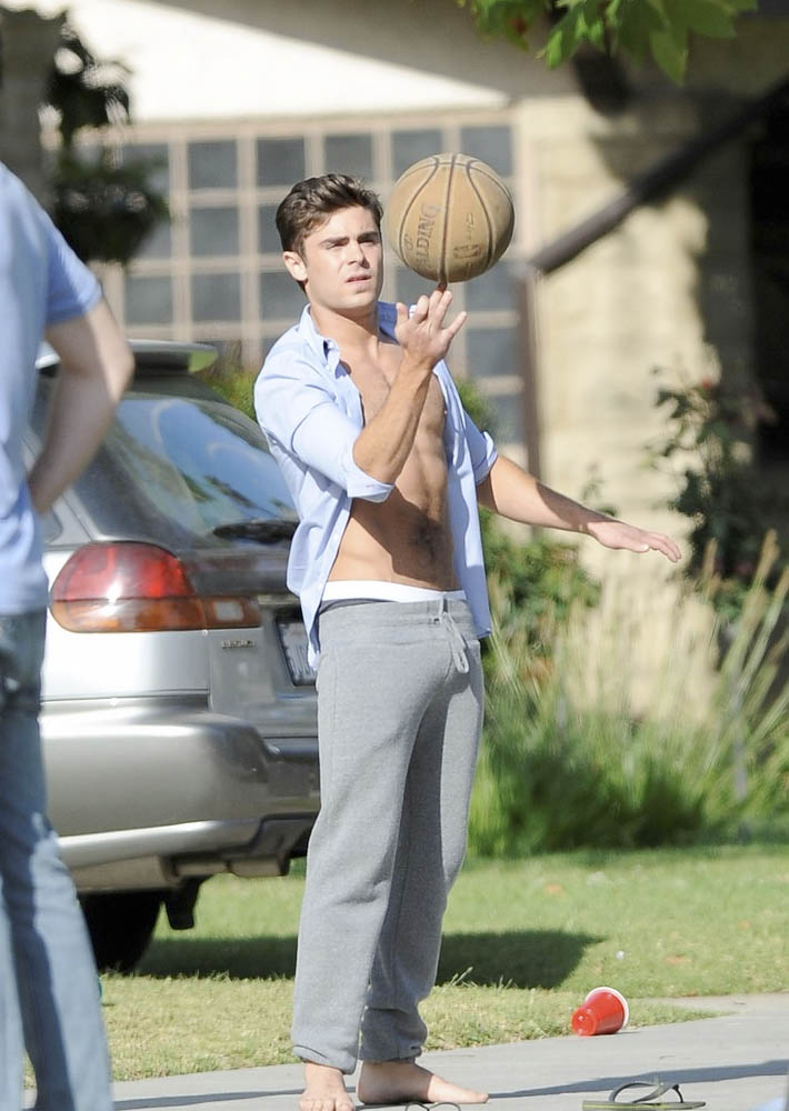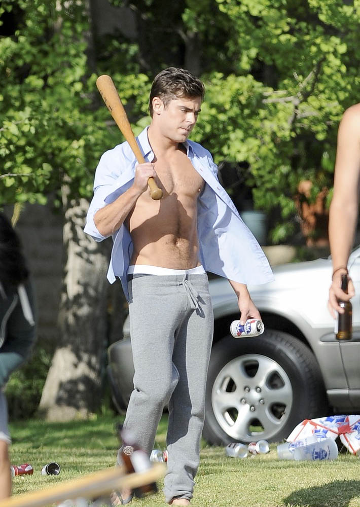 Zac Efron marcando paquete y sin camiseta