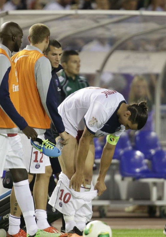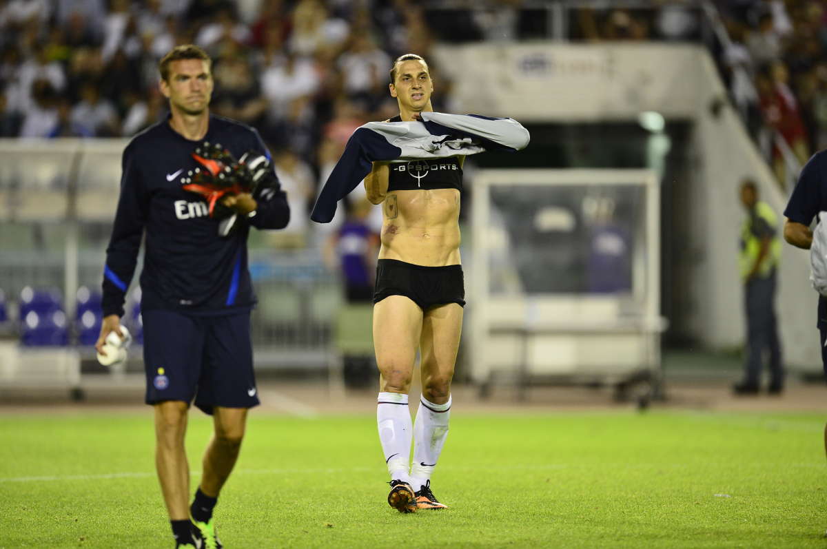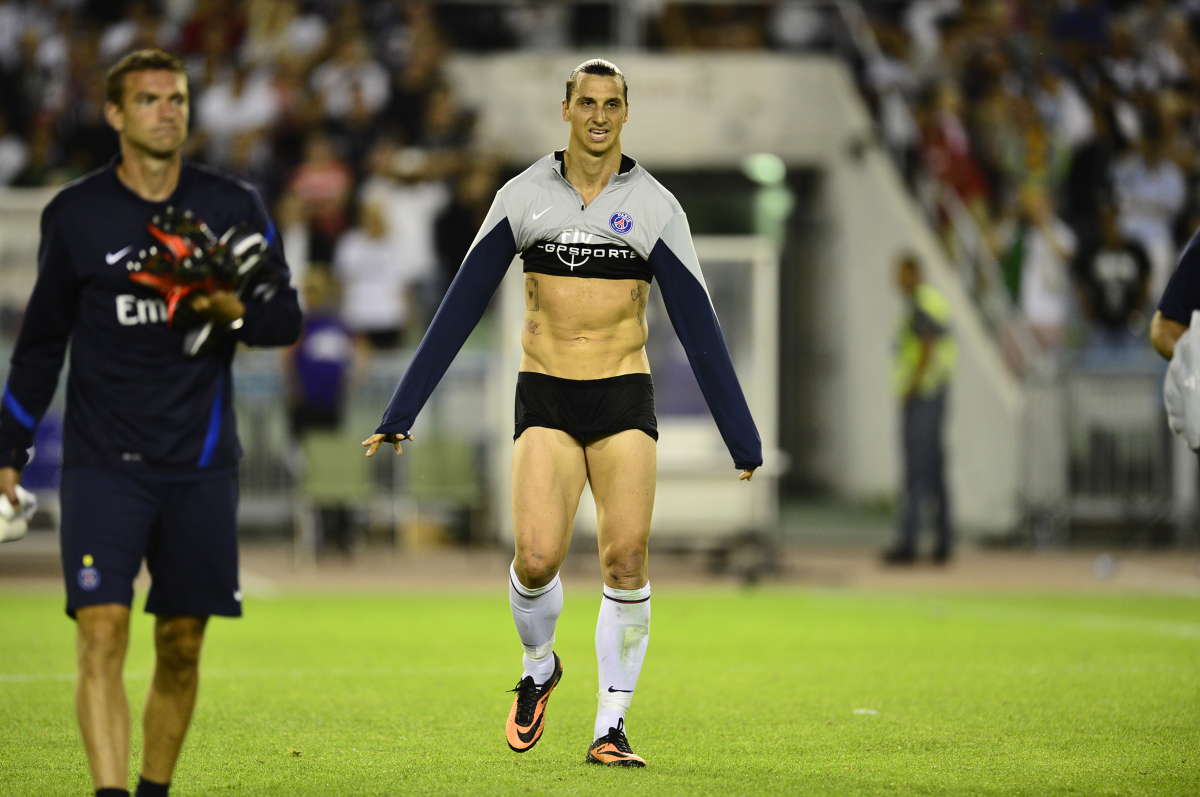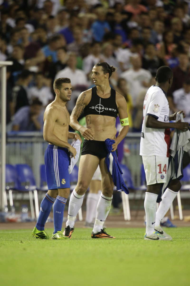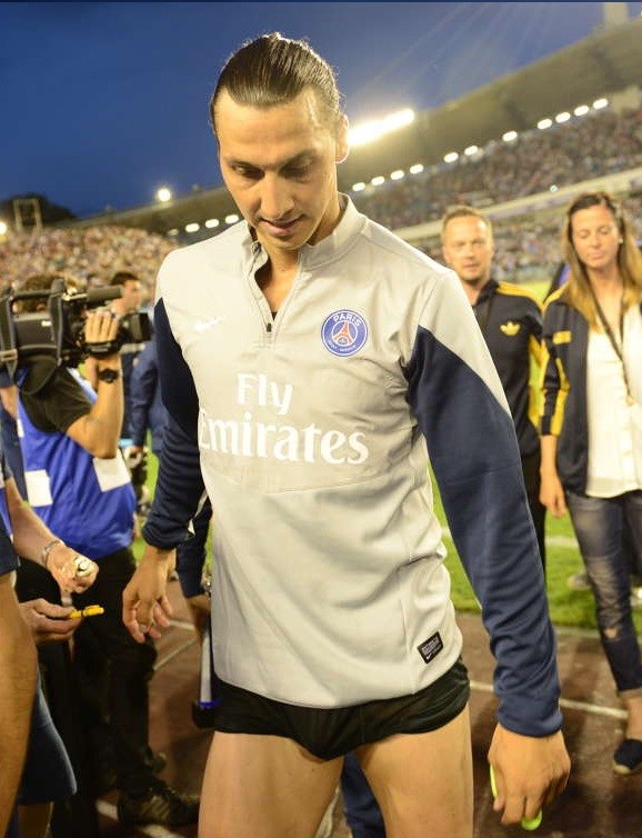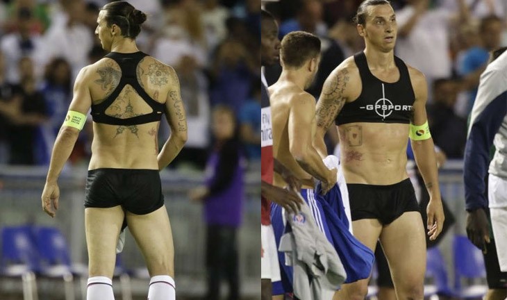 El sueco, sabedor de su tirón como icono sexual, se quitó la camiseta y los pantalones tras terminar un partido con su actual equipo, el Paris Saint-Germain. Y así es como se le quedó el look: un bikini. Con las ganas de que tienen algunos de que sea mariquita…