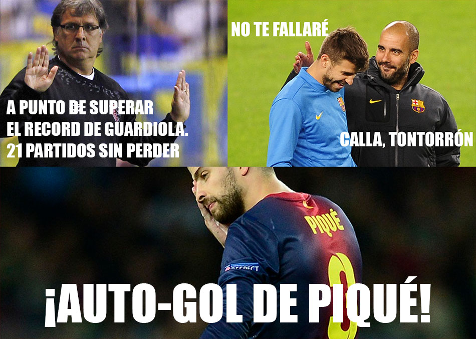 En amENzing somos del Barça pero sabemos tomarnos las derrotas con humor. Martino se queda en 20 partidos sin conocer la derrota (16 ganados y 4 empatados). Un hecho al que no ha dado importancia”Prefiero igualar los seis títulos de Guardiola en 2009″. Pincha abajo para ver la imagen en tamaño completo: