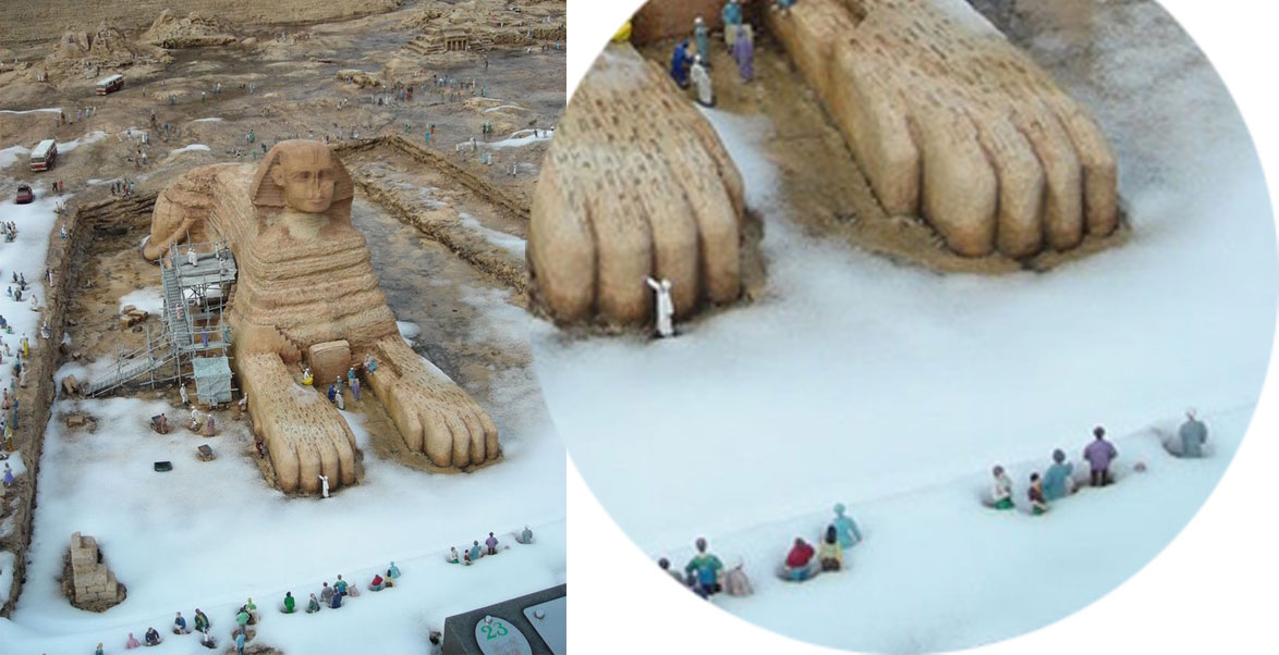 Estos días ha nevado en Egipto por primera vez en 122 años y es cierto que ha habido muchos sitios del país que se han visto cubiertos por la nieve… pero no ha caído nieve en las famosas pirámides. Son todo ‘fakes’… ‘fakes’ de lo más variopinto. En las fotos que se han compartido hay desde una miniatura de un parque japonés (en la que sólo hay que fijarse un poco para ver que las “personas” son muñecos) o una foto casi más antigua que las pirámides retocada con Photoshop.