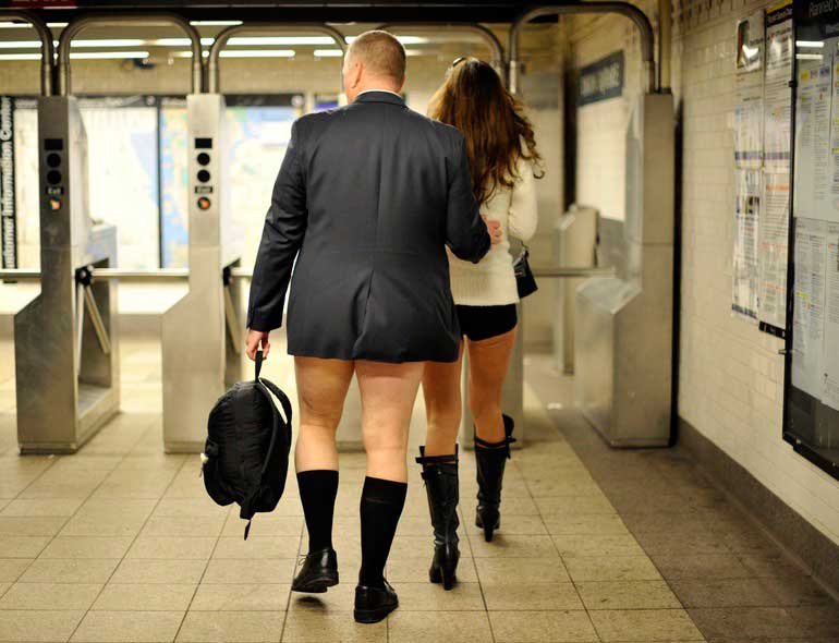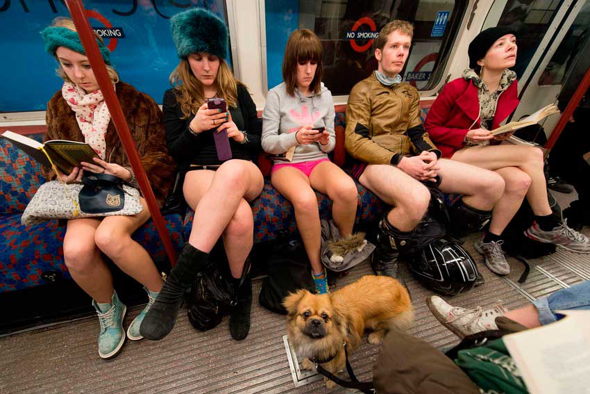La Jornada de Piernas al Aire en el Metro se ha vuelto a repetir un año más ante la estupefacta mirada de los viajeros que se topan con ella por primera vez. Imaginamos que los pasajeros que no conozcan esta celebración, por muy modernos y desprejuiciados que sean, se tienen que preguntar a si mismos “¿me están gastando una broma? ¿soy carne de alguna camapaña publicitaria y va a salir mi cara de susto en la televisión?”