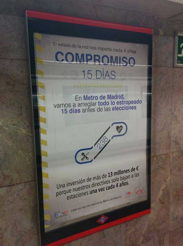 Un colectivo no identificado ha conseguido colarle a Metro de Madrid un cartel publicitario que deja en evidencia la gestión que el Gobierno está haciendo del medio de transporte en los últimos años.