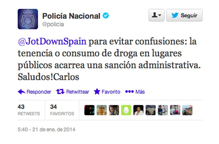 Esta tarde nos hemos quedado en shock tras ver cómo la propia Policía Nacional a través de su cuenta oficial de Twitter recomendaba llevar los porros “liados y en un lugar que no lo huelan los perros” si viajas en avión al extranjero. Hemos querido saber quién está detrás de la cuenta de @policia y resulta que ya es bastante famoso. Se llama Carlos y ha dado varias entrevistas hablando de su labor para la Policía.