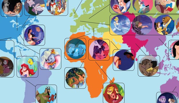 Nunca nos habíamos planteado que ‘La Sirenita’ discurría en aguas cubanas o que ‘La Bella Durmiente’ y ‘Blancanieves’ tenían lugar en Europa del Este. Aquí puedes ver el mapa del Mundo según Disney. Pincha aquí para tamaño completo.