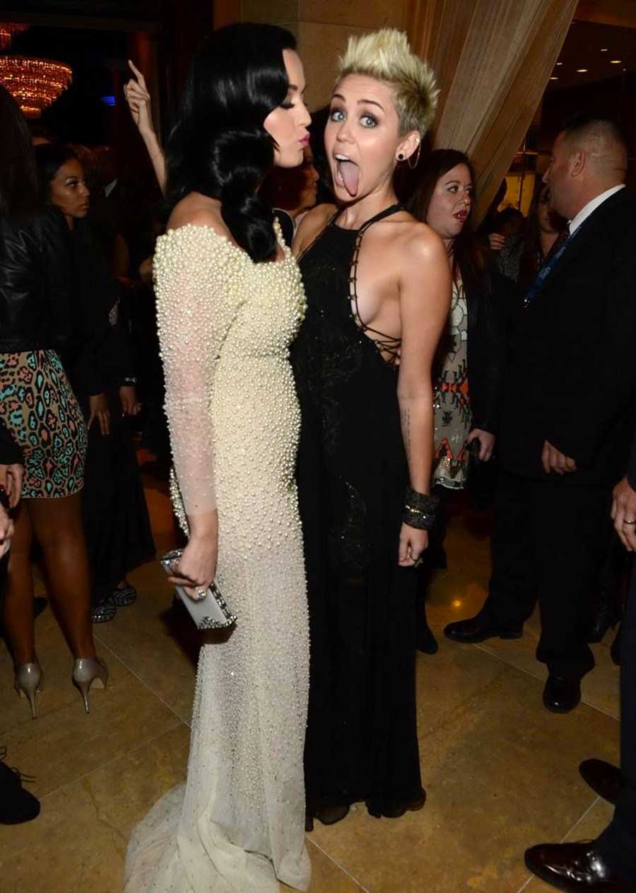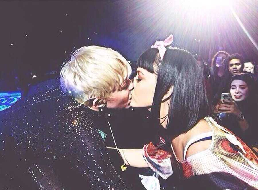 Ambas ponen cara de sorpresa tras el beso pero todo apunta a que fue algo de mutuo acuerdo. En las últimas semanas tanto Katy Perry como Miley Cyrus se han dejado ver en conciertos de otras divas, teniendo ellas mismas entre manos sus propios tours. Tanto Miley como Katy visitaron a Britney Spears y ahora Katy ha hecho lo propio con Cyrus.