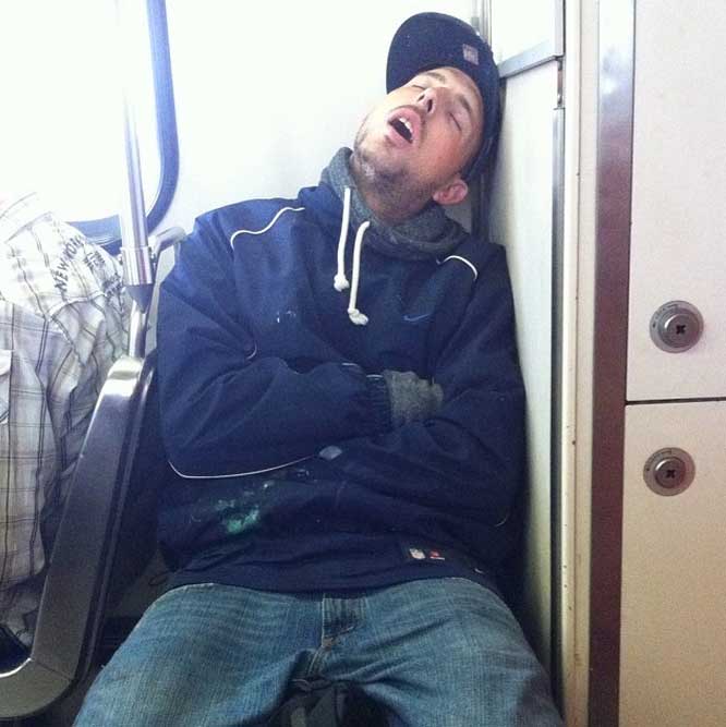El usuario de la cuenta de Instagram @DreaminOnTransit (durmiendo en marcha) se dedica a fotografiar a gente dormida en el Metro…