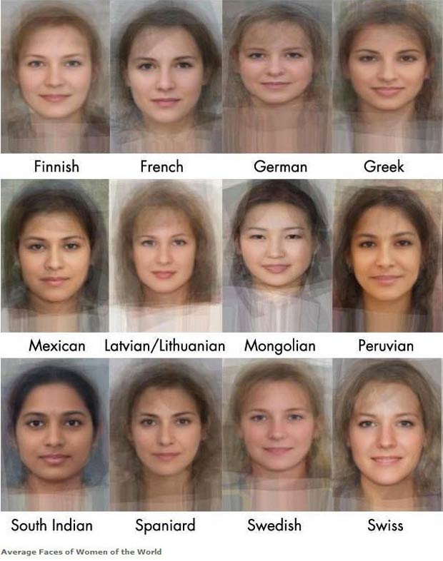 Face Research ha creado un software que permite hacerse una idea de cómo es la cara de una mujer media en varios países del mundo. Para ello, fusiona miles de fotografías de mujeres de los diferentes países que han entrado en el estudio.