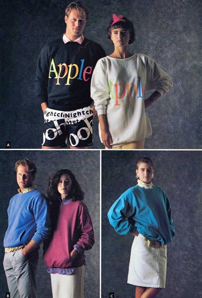 Así fue la colección de ropa con la que Apple trató de introducirse en la industria textil. Fue un fracaso en su momento pero apostamos a que sería un auténtico éxito a día de hoy, con las prendas tal y como las ves. 80s Revival:
