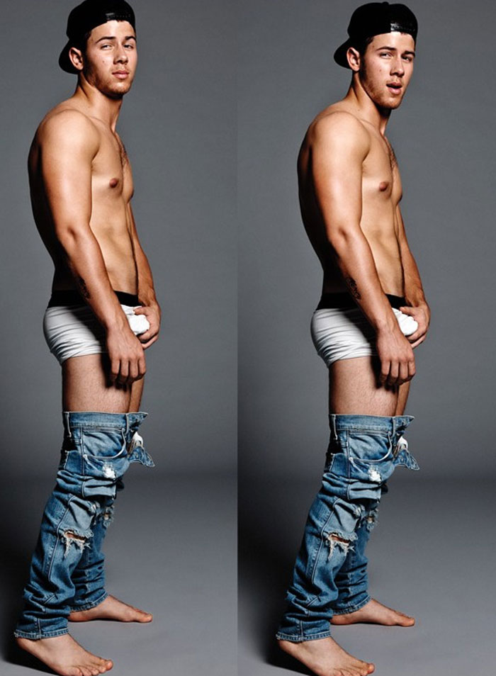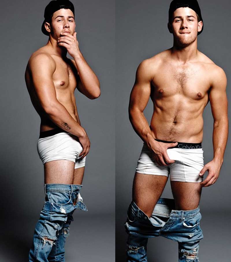 El benjamín de los Jonas Brothers ya no es un niño. Se ha convertido en un hombrecito y sabe cómo enloquecer a sus fans. Nick Jonas ha posado casi desnudo en la revista Flaunt agarrándose la entrepierna, enseñando el culo… todo como muy sutil pero bastante evidente. Vamos, que sabe que a sus fans lo que les gusta es verle el paquete, a ver si marca o no marca.