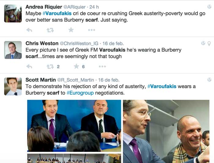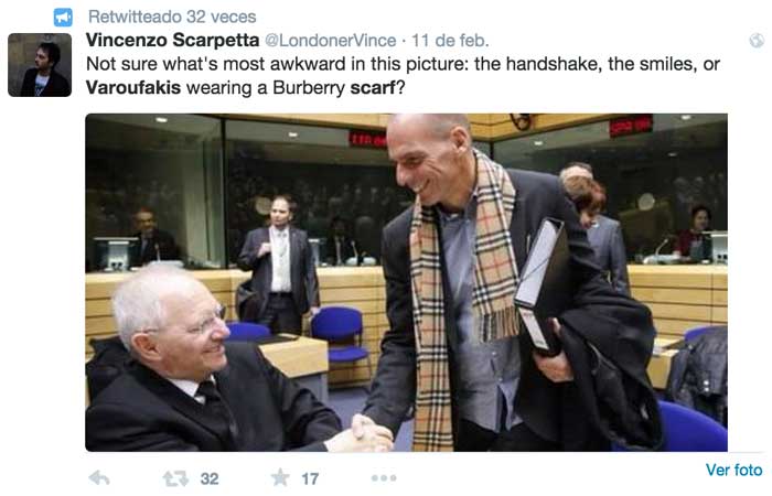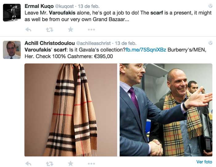 El nuevo ministro griego de economía Yanis Varufakis ha desatado la polémica por la bufanda que llevó el otro día en el Parlamento Europeo.