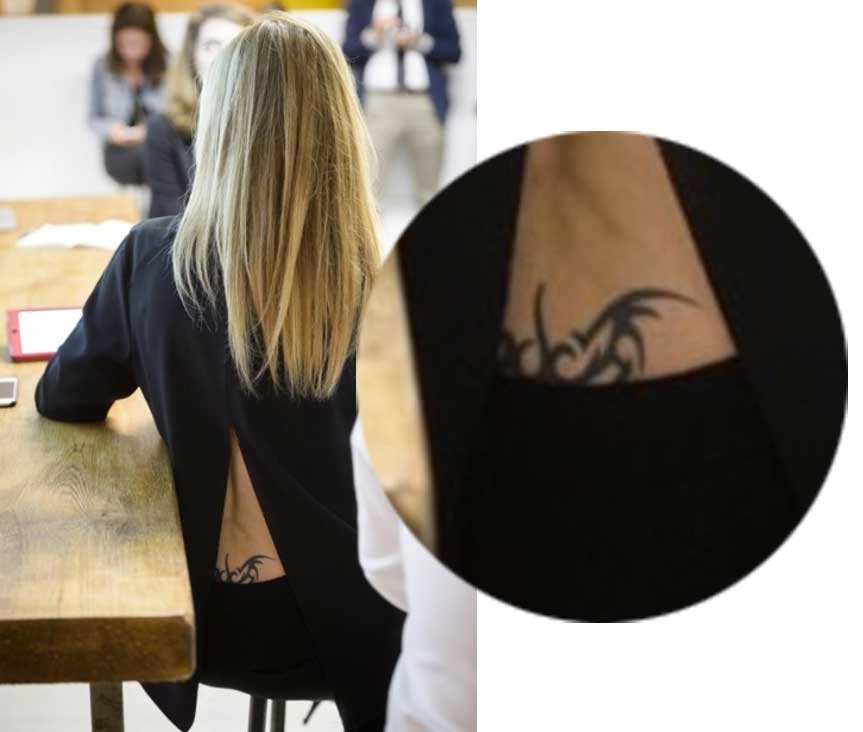 Un fotógrafo de El Mundo ha conseguido esta mañana una fotografía del tatuaje de la candidata a la presidencia de la Comunidad de Madrid por el PP, Cristina Cifuentes. La actual delegada del Gobierno en Madrid llevaba una camisola abierta por la espalda.