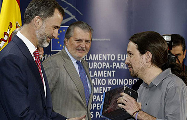 Pablo Iglesias ha tenido su primer encuentro oficial con el Rey Felipe VI y ha aprovechado para hacerle un regalo: un pack con todas las temporadas de la serie ‘Juego de Tronos’ en Bluray.
