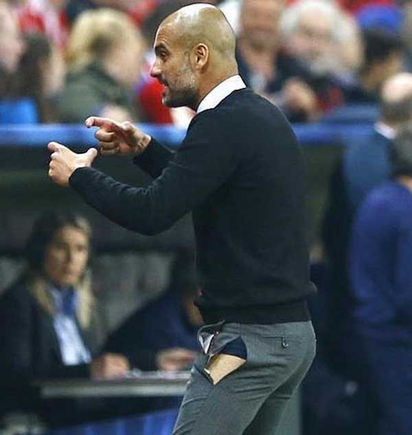 ¿Quién habrá cosido los pantalones que Guardiola llevaba ayer en el partido de Champions? Porque el pobre se quedó en gallumbos en pleno juego. Aunque claro, viendo los agarrones de pantalón que se suele dar no es normal que la tela ceda.