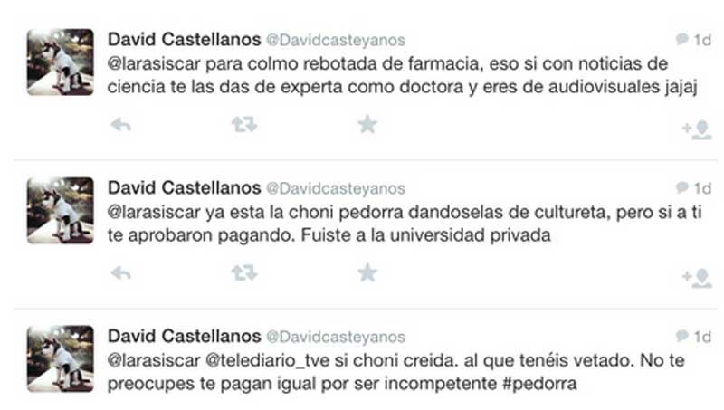 En el año 2009, la periodista comenzó a recibir insultos a través de Facebook, por lo que acabó cerrando su cuenta en 2011. Twitter canalizó desde entonces los improperios. “En julio de 2014 empecé a tomar capturas; en octubre, los ataques ya eran tan brutales que acudí a la Unidad de Investigación Tecnológica [UIT] de la Policía”, ha explicado la presentadora-