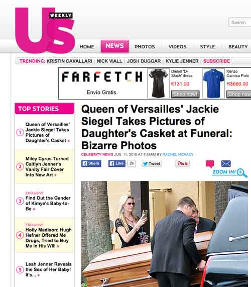 La noticia de la muerte de la hija de ‘La Reina de Versalles’ nos dejaba impactados hace un par de días por la juventud de la chica, que tan sólo tenía 18 años. Ahora, en Estados Unidos están escandalizados por las fotos publicadas por la prensa, hechas en el entierro de la joven.