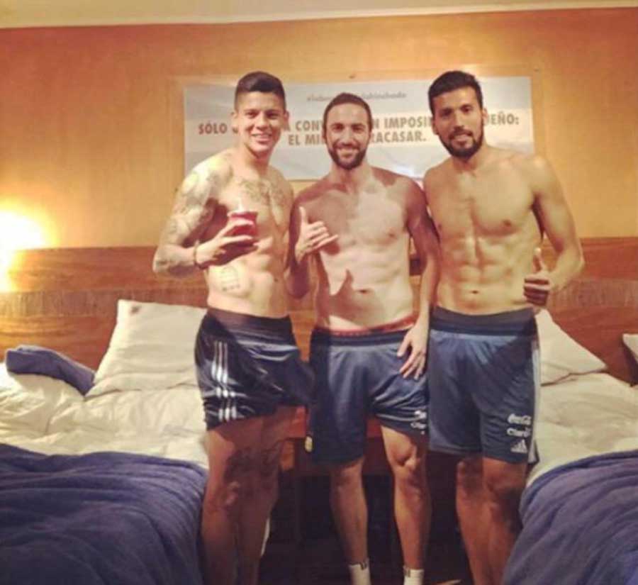 Marcos Rojo, jugador de la Selección Argentina, subió ayer una fotografía en la que aparecía junto a sus compañeros de equipo: Ezequiel Garay y Gonzalo Higuaín.