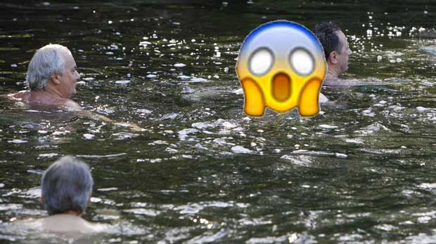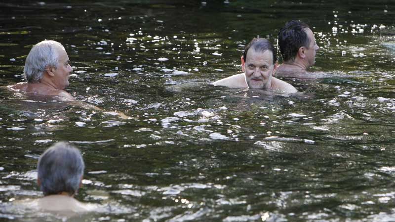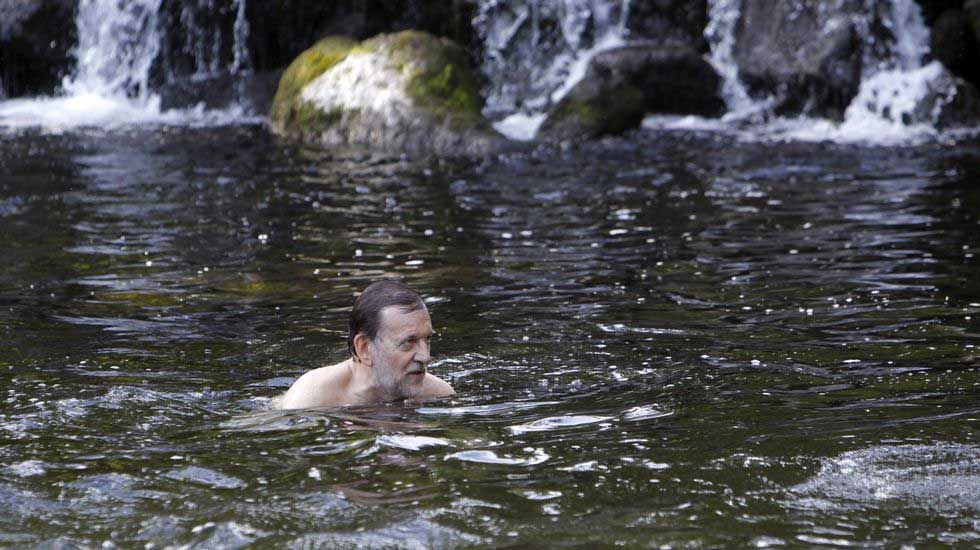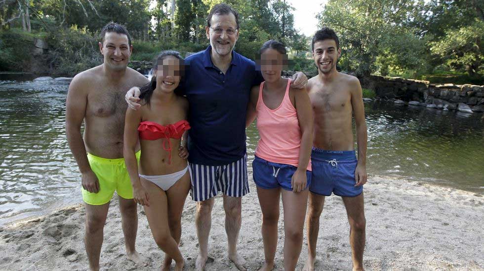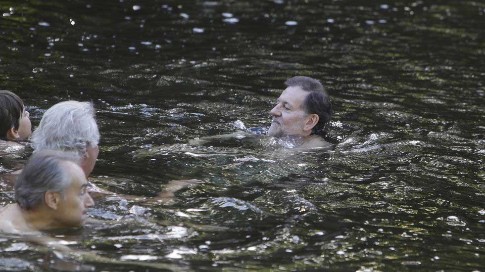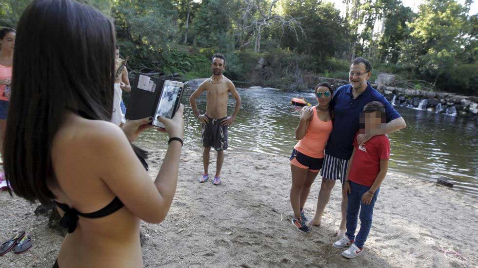 El Presidente del Gobierno Mariano Rajoy sorprendió ayer a los bañistas del Río Umia al aparecer allí de forma espontánea. Los visitantes del río gallego se hicieron fotos con él como si fuese una estrella del pop.