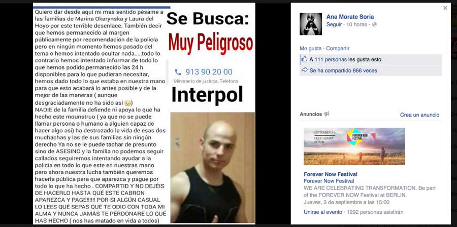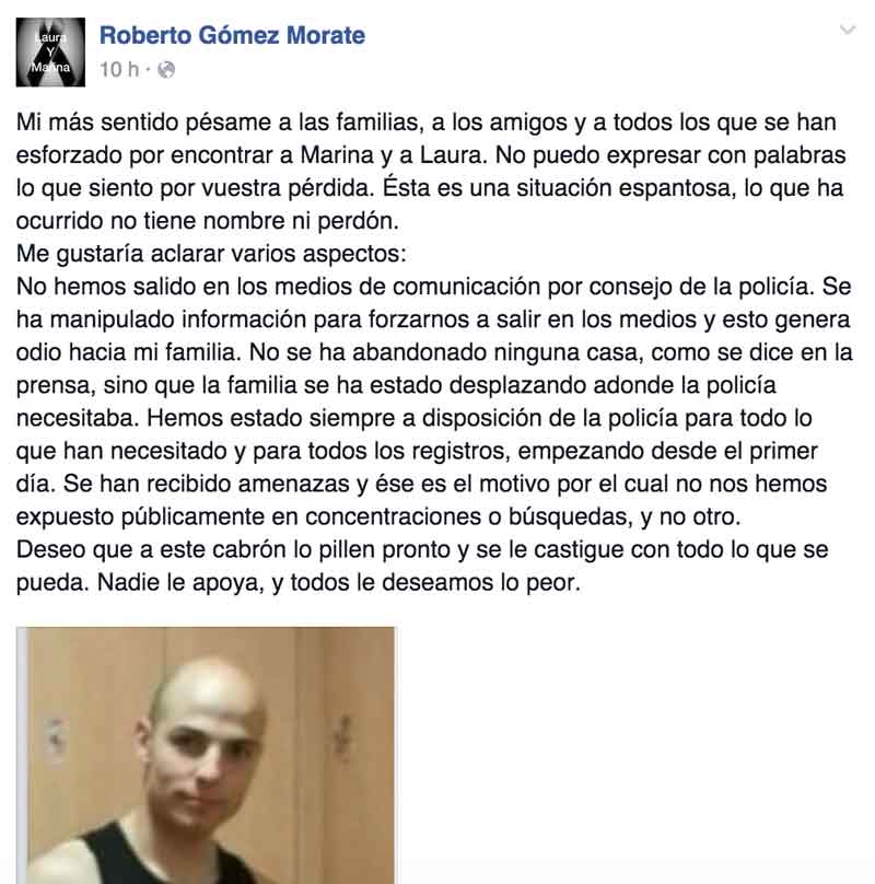 Los familiares van más allá y no usan la palabra presunto… Aquí tienes los mensajes que ha decidido publicar los familiares del presunto asesino en sus perfiles de Facebook. Es tremendo: