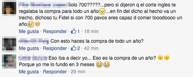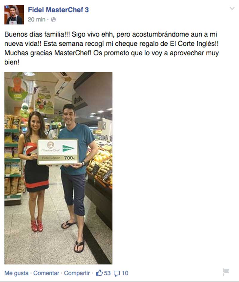 Fidel, uno de los concursantes que más lejos ha llegado en la última edición de ‘Masterchef’, acaba de subir una foto del momento en el que recogía el cheque que les dan al terminar el programa. Sí, ese cheque que dicen “nuestro supermercado patrocinador te regala la compra de todo un año”… Pues parece que el supermercado patrocinador tiene un concepto muy particular de lo que es la compra de todo un año… 58,33 euros al mes.
