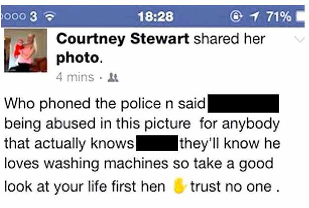 Una gran polémica ha surgido en Reino Unido por la foto que una madre ha subido a su cuenta de Facebook. Courtney Stewart tiene un hijo con Síndrome de Down y subió una foto del niño metido dentro de una lavadora. La mujer ha sido interrogada por la policía porque alguno de sus amigos de Facebook les llamó tras ver la foto del niño dentro del electrodoméstico.