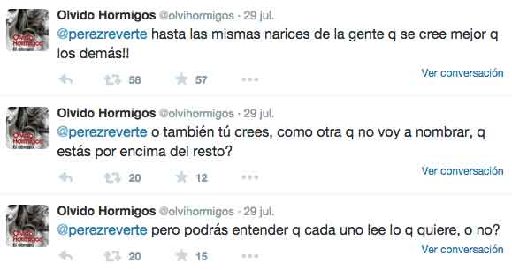 Arturo Pérez Reverte se enzarza en Twitter con Olvido Hormigos