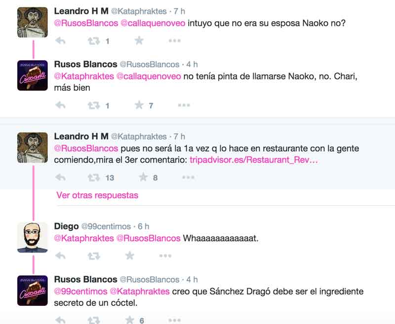 El grupo Rusos Blancos dio la voz de alarma y gracias a otros tuiteros salieron a la luz comentarios de TripAdvisor que dejan entrever que a Sánchez Dragó le van las relaciones en negocios de hostelería: