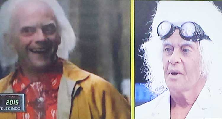 Esto no ha gustado nada a los fans de la saga ‘Regreso al futuro’, que están que trinan con este “homenaje”. Atención a cómo travistieron a Chelo García Cortés de Doc Brown. Prepara tus retinas… Hay quien dice que así estaba más favorecida: