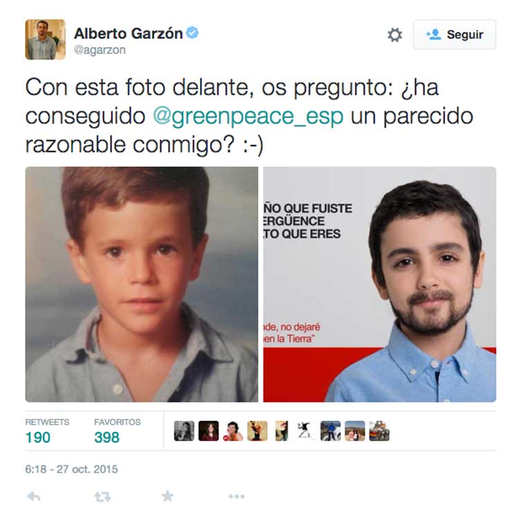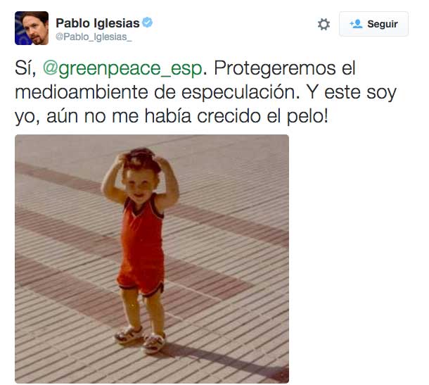 Greenpeace ha hecho un llamamiento a los políticos españoles para salvar al medio ambiente apelando a sus ‘yo niños’. Los políticos citados han contestado subiendo fotos de cuando eran pequeños. Bueno, no todos: