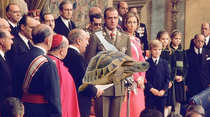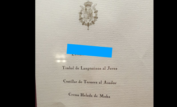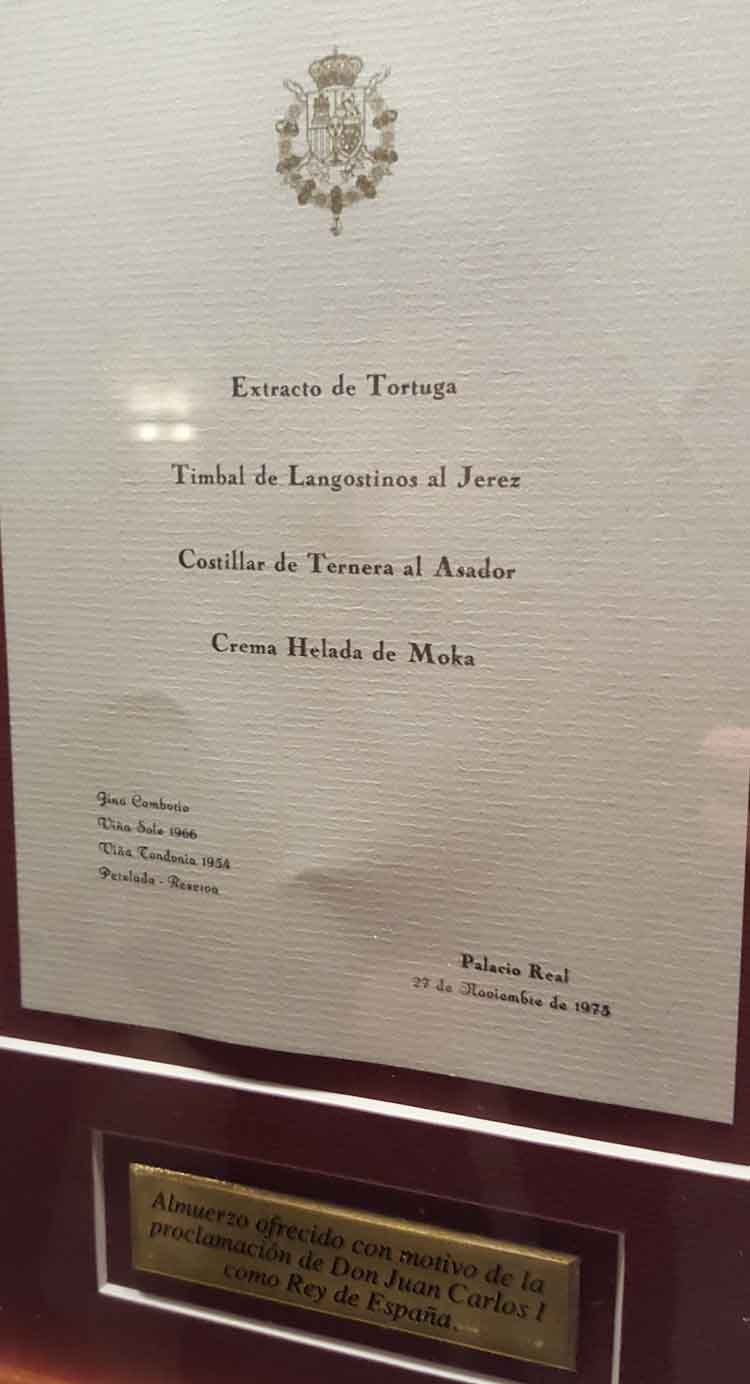 Parece que el gusto del Rey Juan Carlos por los animales exóticos no comenzó con sus cacerías por África, ya en 1975, en el menú del banquete de su proclamación comió nada más y nada menos que lo que ves en este tarjetón oficial.