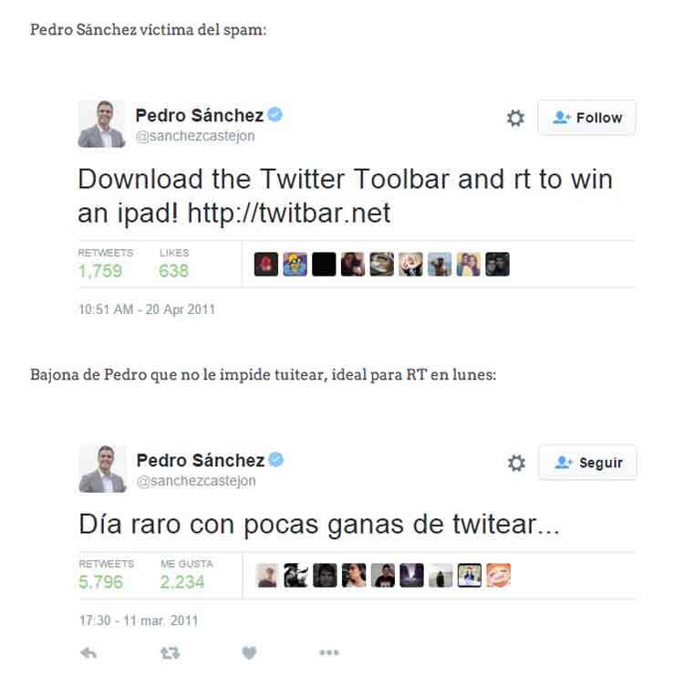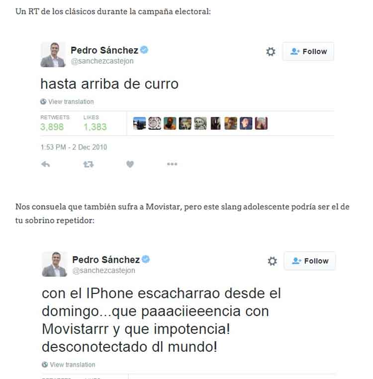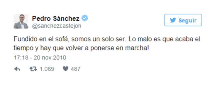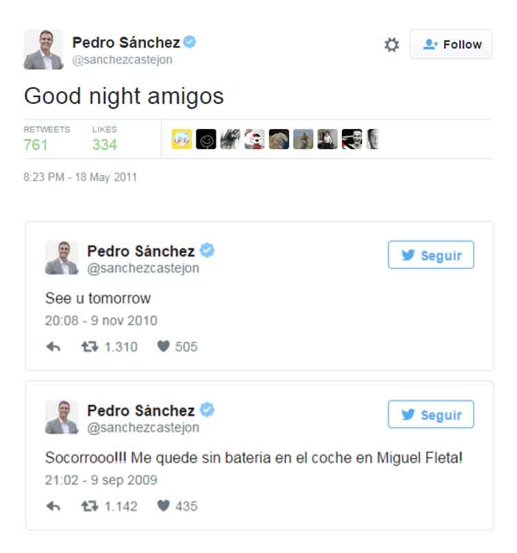 El periodista David Moreno de Good2B.es ha hecho una recopilación de ‘tuits’ antiguos de Pedro Sánchez, que independientemente de tu opción política te resulten probablemente graciosos, más que nada por los comentarios que añade el redactor.