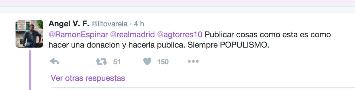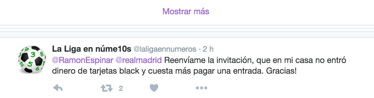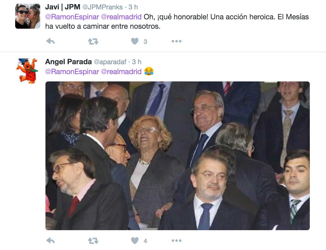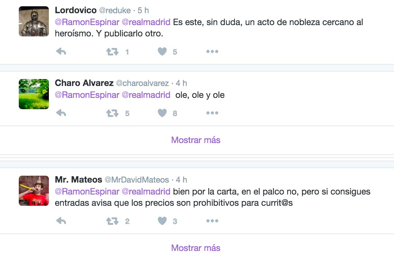 Ramón Espinar ha publicado en Twitter una fotografía de la carta que ha enviado al Real Madrid para agradecer y rechazar la invitación al palco del Santiago Bernabéu. Sus seguidores en Twitter han reaccionado de forma dispar. Algunos han alabado el rechazo de la invitación mientras que otros le han llamado populista. Algunos incluso le han recordado que su padre fue usuario de las Tarjetas Black de Caja Madrid.