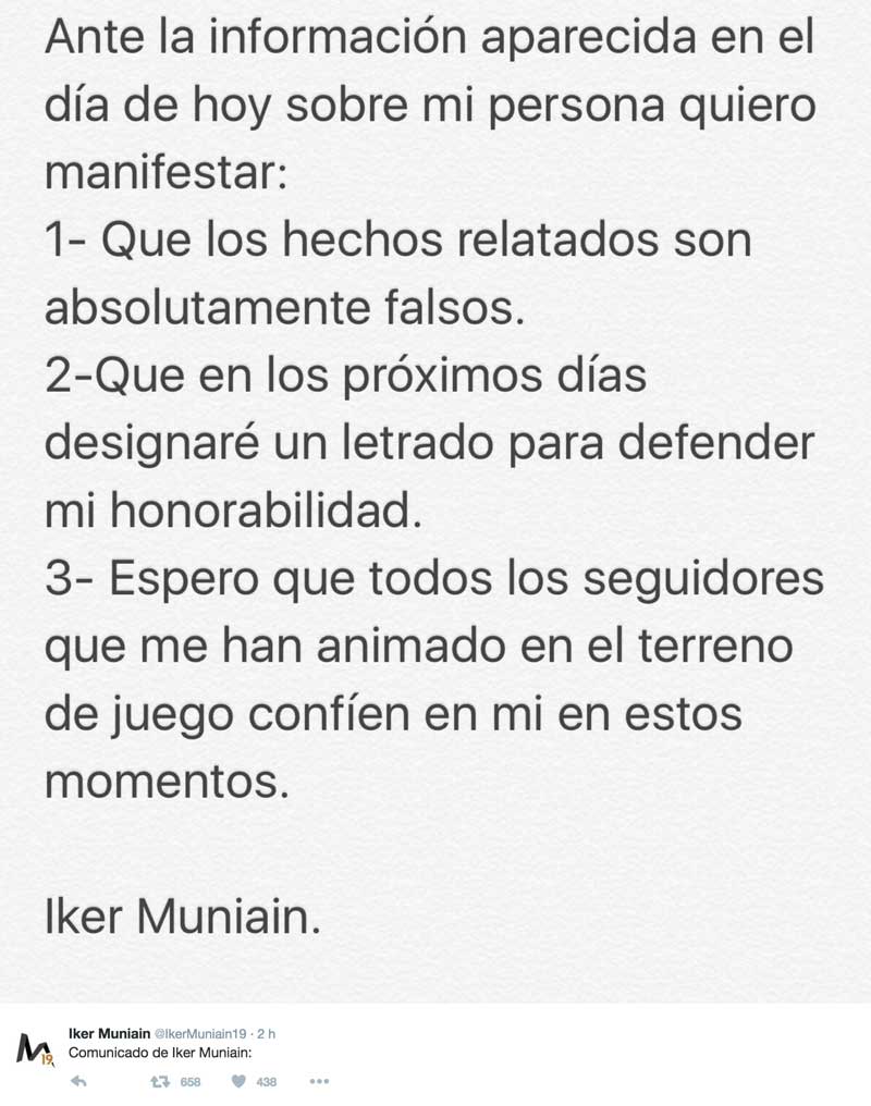 El jugador vasco ha emitido un comunicado en referencia a las noticias aparecidas en las últimas horas: