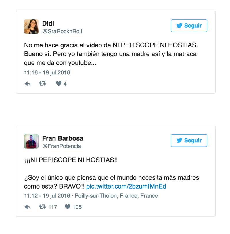 El vídeo de una madre advirtiendo a su hija de que deje de usar Periscope se ha hecho viral. La madre, al ver que su hija está emitiendo en directo, le quita el móvil mientras desata todo su enfado: “Un tio con la polla al aire”. La mujer ha seguido emitiendo durante unos instantes sin darse cuenta:
