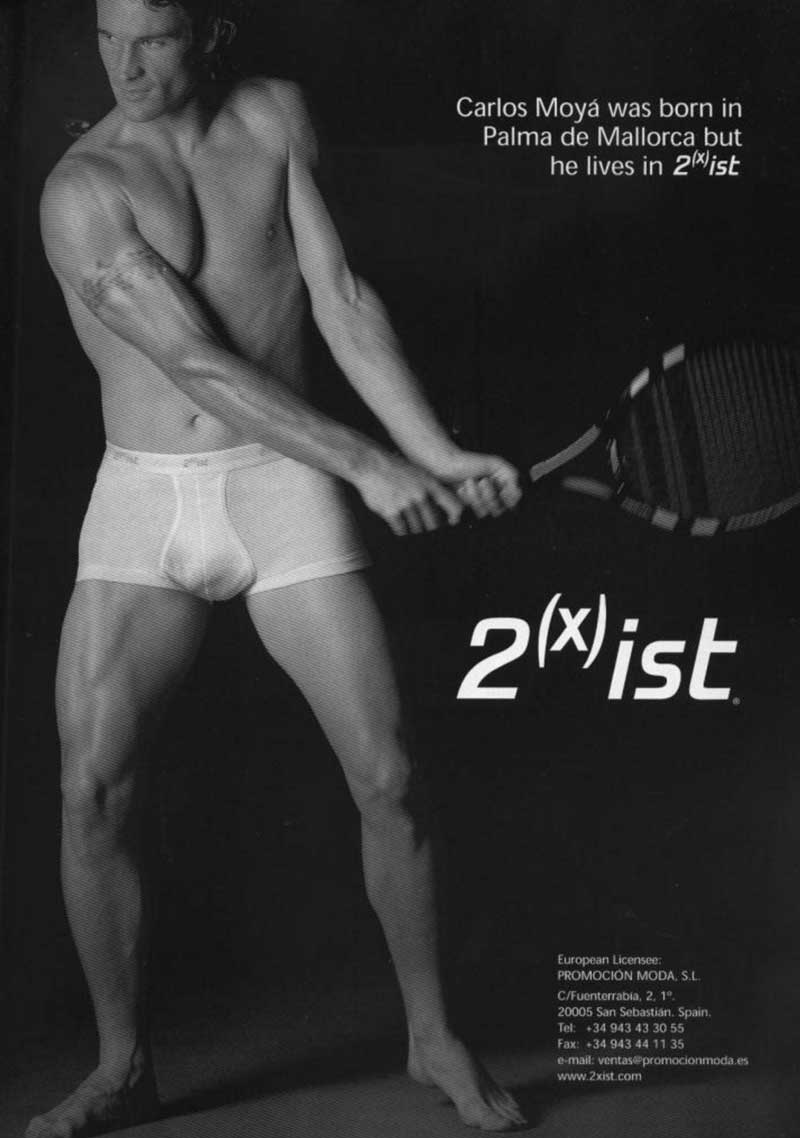 Carlos Moyá ha vuelto hoy a la primera línea de actualidad con su aparición en el programa ‘Mi Casa es la Tuya’. Carles Moyá fue la imagen de “2Xist” hace unos años en los que no tenía pudor de posar marcando sus atributos más personales: