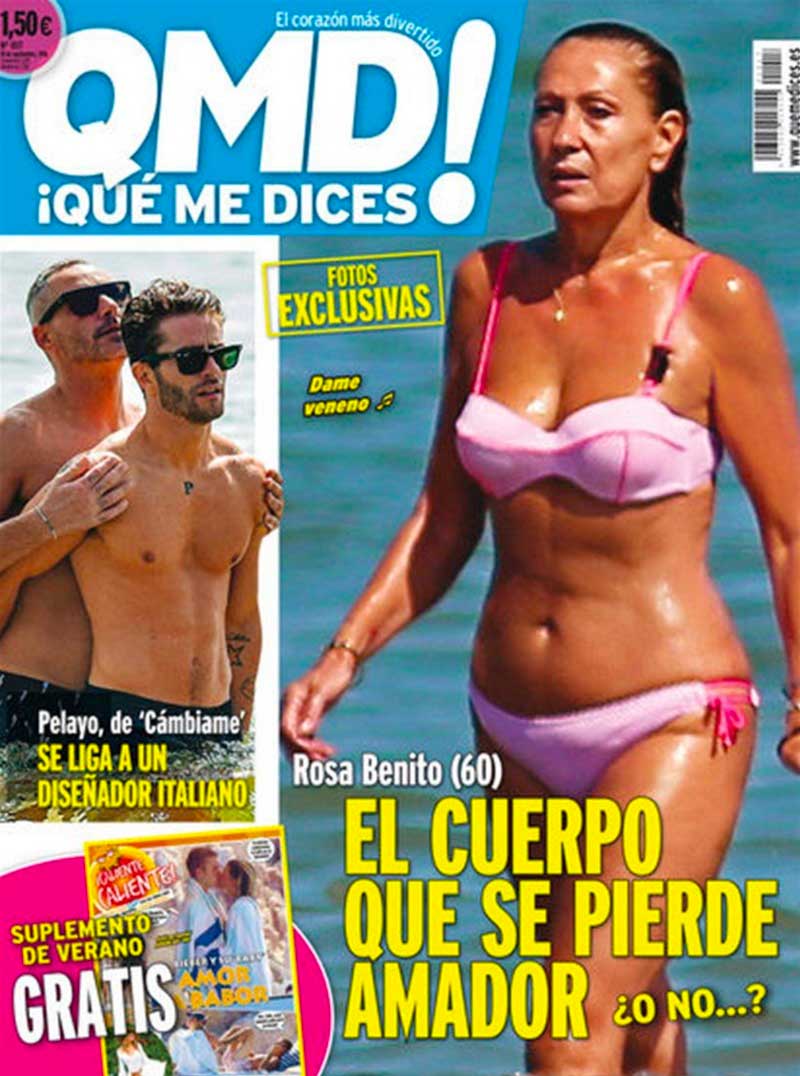 Rosa Benito hace tiempo que no sale en televisión pero unas fotos de ella en la playa la han devuelto a la primera línea… por lo menos a la portada de ¡Qué Me Dices! Las redes sociales se han apresurado en hacer todo tipo de comentarios sobre su figura. Buenos y malos: