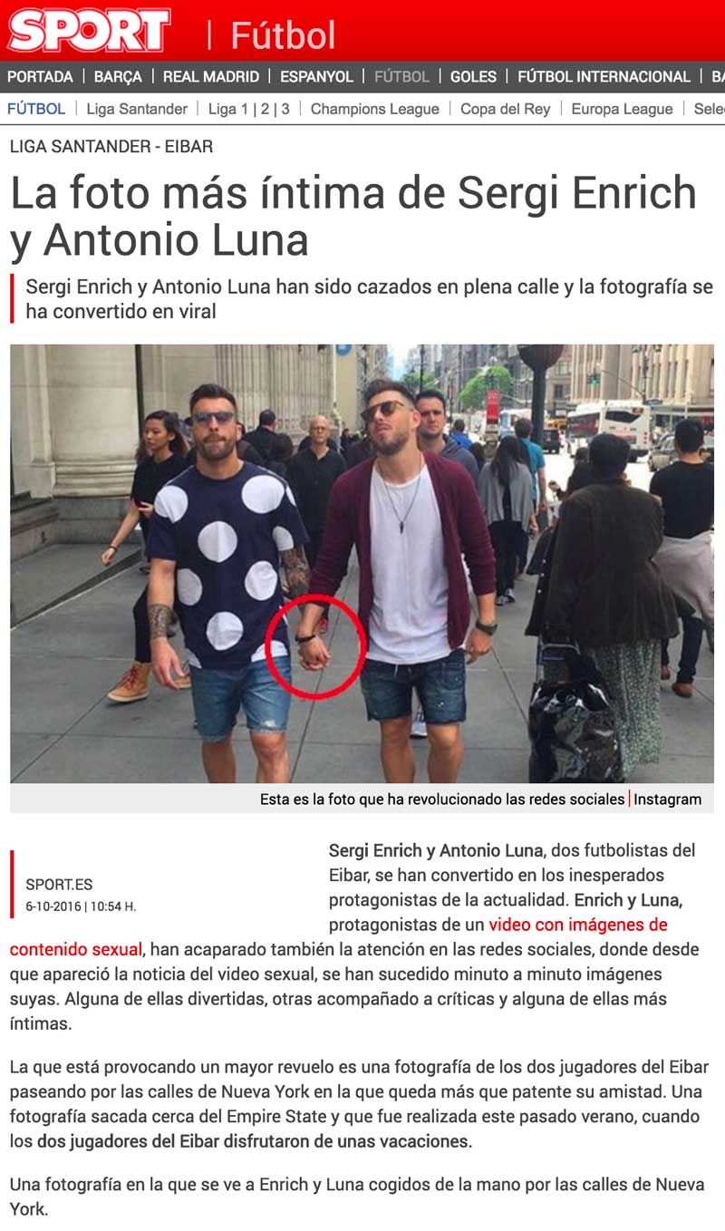 El diario Sport ha publicado una fotografía en la que describen que “una fotografía de los dos jugadores del Eibar paseando por las calles de Nueva York en la que queda más que patente su amistad. Una fotografía sacada cerca del Empire State y que fue realizada este pasado verano, cuando los dos jugadores del Eibar disfrutaron de unas vacaciones”