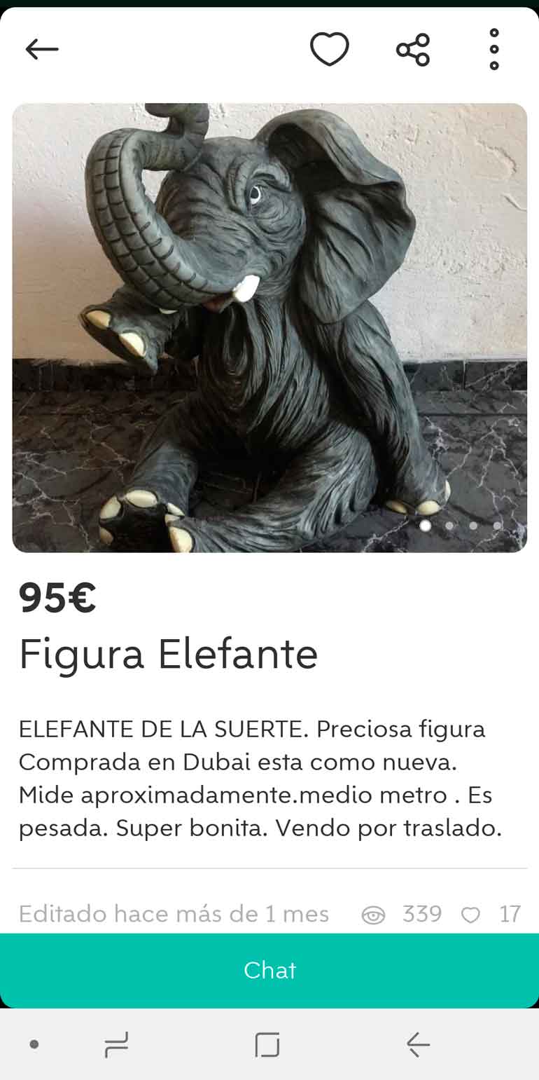Puedes comprar un estupendo cuadro de 2 metros de Buda por 195 euros, un elefante que mide medio metro y pesa mucho por 95. El elefante está comprado en Dubai según Sonia y nos preguntamos cómo demonios trajo un elefante tan pesado de medio metro desde el mismísimo Dubai.