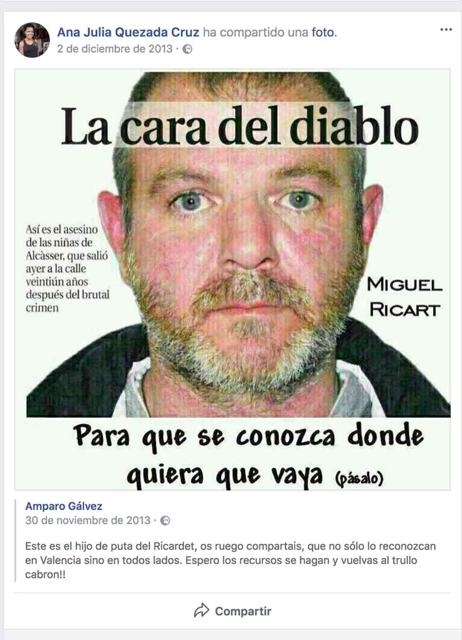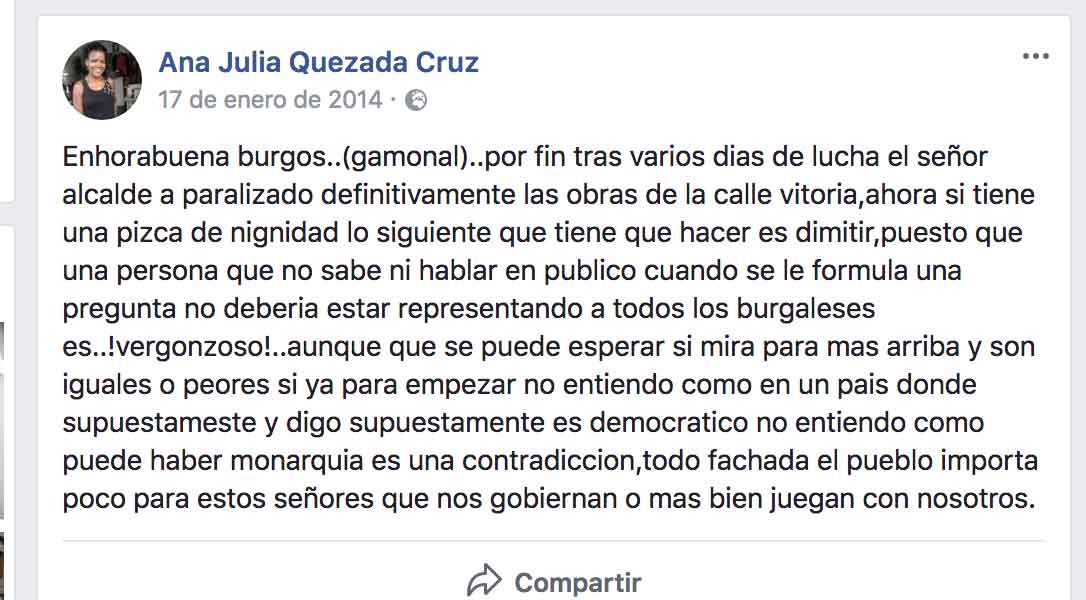 La actividad en Facebook de la presunta asesina de Gabriel es para echarse las manos a la cabeza… más que por lo que critica, por lo que luego parece resultar ser ella misma como persona.