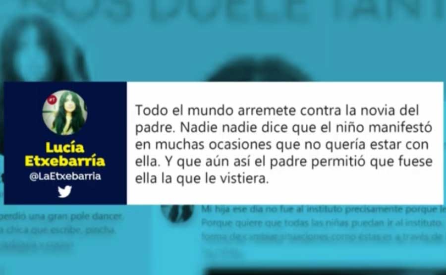 “Todo el mundo arremete contra la novia del padre. Nadie nadie dice que el niño manifestó en muchas ocasiones que no quería estar con ella. Y es que aun así el padre permitió que fuese ella la que le vistiera”.