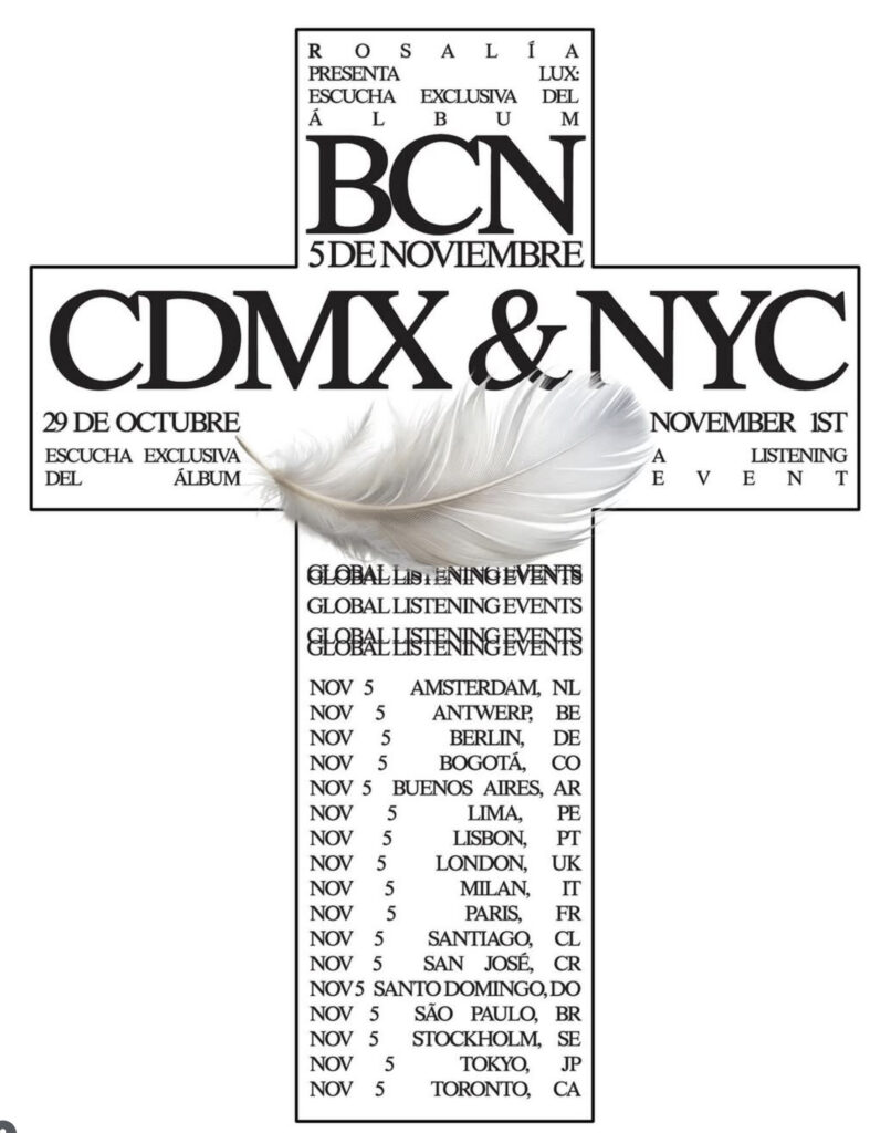 Rosalía, la artista catalana que ha conquistado el planeta con su fusión de flamenco y ritmos urbanos, acaba de anunciar una serie de listening parties exclusivas para presentar su esperado álbum LUX antes de su lanzamiento oficial el 7 de noviembre. La gira de preescuchas abarca ciudades de todo el globo, desde América hasta Asia, pero en España solo Barcelona ha sido la elegida, a pesar de que la revelación de la portada del disco se hizo precisamente en Madrid. Un detalle que ha dejado a más de un fan madrileño con el hype por las nubes… y un toque de decepción.