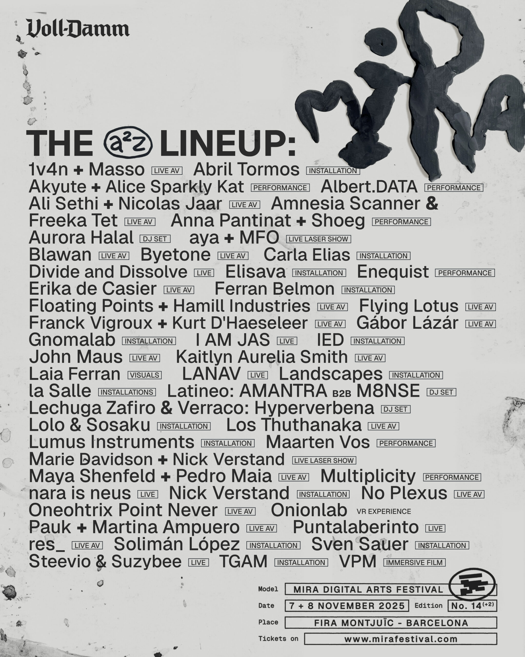 El cartel refuerza la apuesta de MIRA por las colaboraciones entre músicos y artistas visuales, y combina figuras consolidadas con talentos emergentes como Los Thuthanaka, Divide and Dissolve, No Plexus, LANAV o nara is neus. “Queremos seguir siendo un espacio donde la innovación y el riesgo sean el centro de la experiencia”, señalan desde la organización.